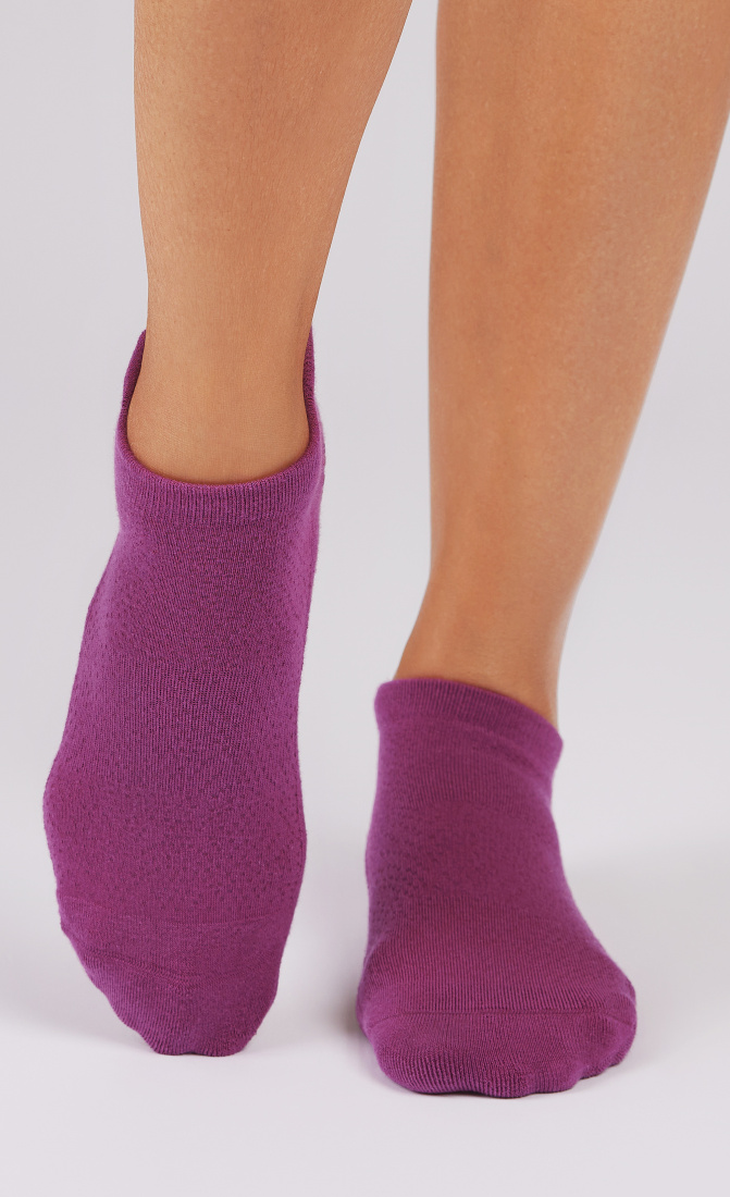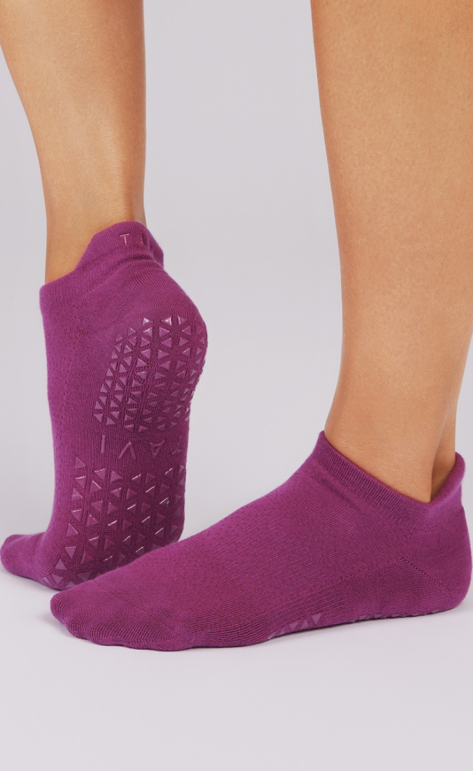Give your sporty side a touch of sensual style. Tavi Noir Savvy's low rise design hugs below the ankle while Tavi's grip sock pattern safely moves you through your barre, Pilates, and yoga classes. Express the heart of Tavi with Function that Flows into Fashion.