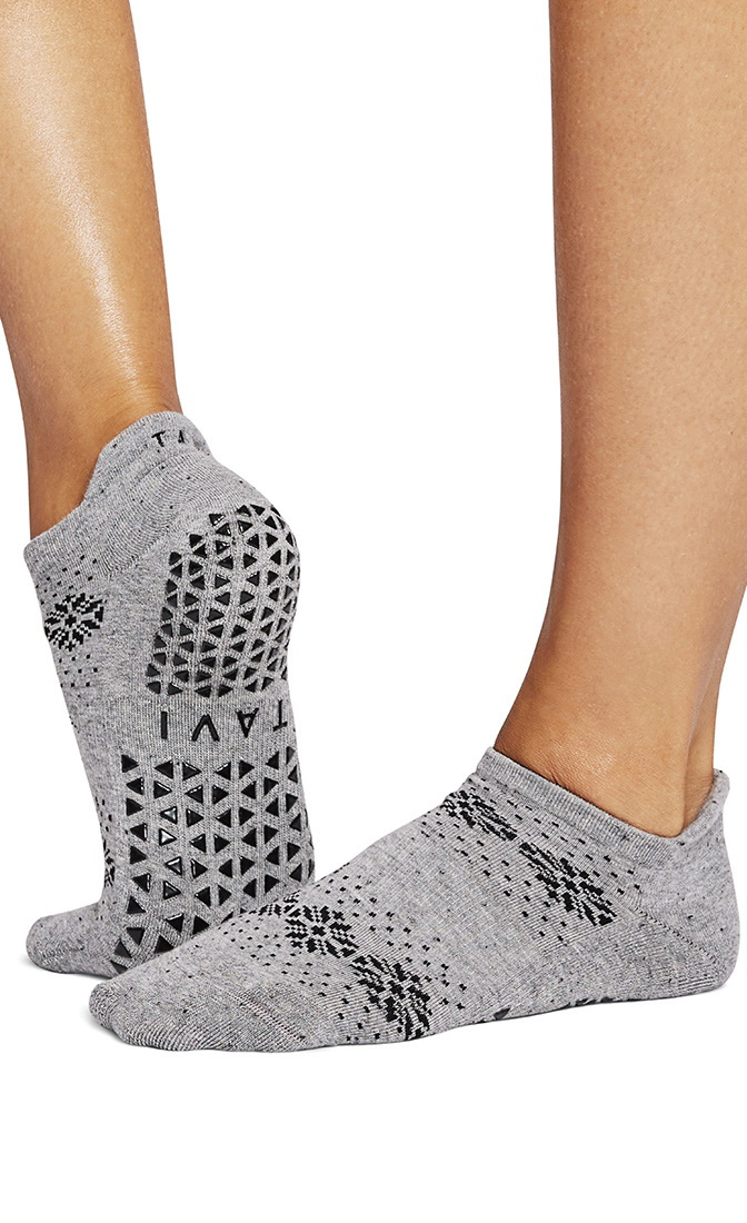 Give your sporty side a touch of sensual style. Tavi Noir Savvy's low rise design hugs below the ankle while Tavi's grip sock pattern safely moves you through your barre, Pilates, and yoga classes. Express the heart of Tavi with Function that Flows into Fashion.